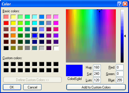 From the page, table, cell or font properties, select the color you want