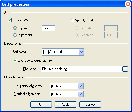 Cell color: Sets a BGCOLOR attribute to the TD