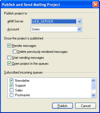 | Local DSN : Subscribe to this incoming queue to receive notifications when you use the built-in SMTP server and when eMill aborts the sending of a message. To receive these notifications, you must also check the 'Create local delivery notification' option in the Mailer DSN properties. |